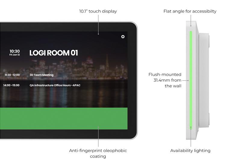 In terms of standards, the Logitech Tap Scheduler makes things easy by using PoE for data and power. There’s no need for PoE+ or any other specialized power delivery. WiFi is on board as well, if the deployment calls for it. The mounting pattern adheres to the VESA 100mm x 100mm standard, and the cable management and mounting offerings all come together for a familiar installation process. Logitech has made sure the Tap Scheduler is compatible with major meeting room platforms and calendars. Finally, the capacitive touch screen uses a common resolution (1280×800), an IPS LED panel, and adds a fingerprint-resistant coating – all of these are welcomed and common features for touch panel devices.